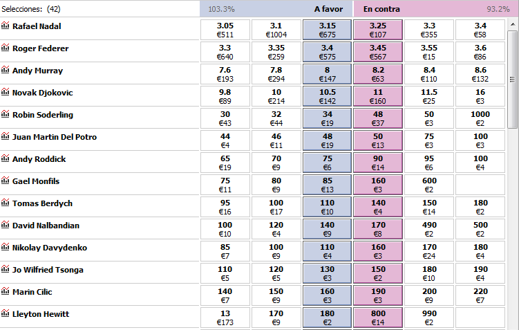 Bueno, quería compartir con ustedes las quotas a ganador del Abierto de Australia que empieza en unas semanas.